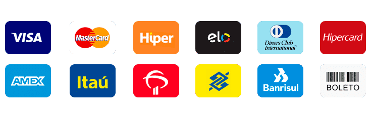 Você pode realizar o pagamento por Cartão de Crédito, Boleto Bancário, PIX, PayPal, Google Pay, Samsung Pay e Débito Bancário.